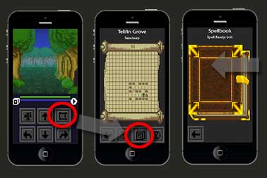 Spelaren förvarar alla sina kartor, besvärjelseböcker och uppdragsloggar på ett ställe. För att byta besvärjelse eller läsa mer om vad de gör, öppna Formelsamlingen och svep åt vänster.